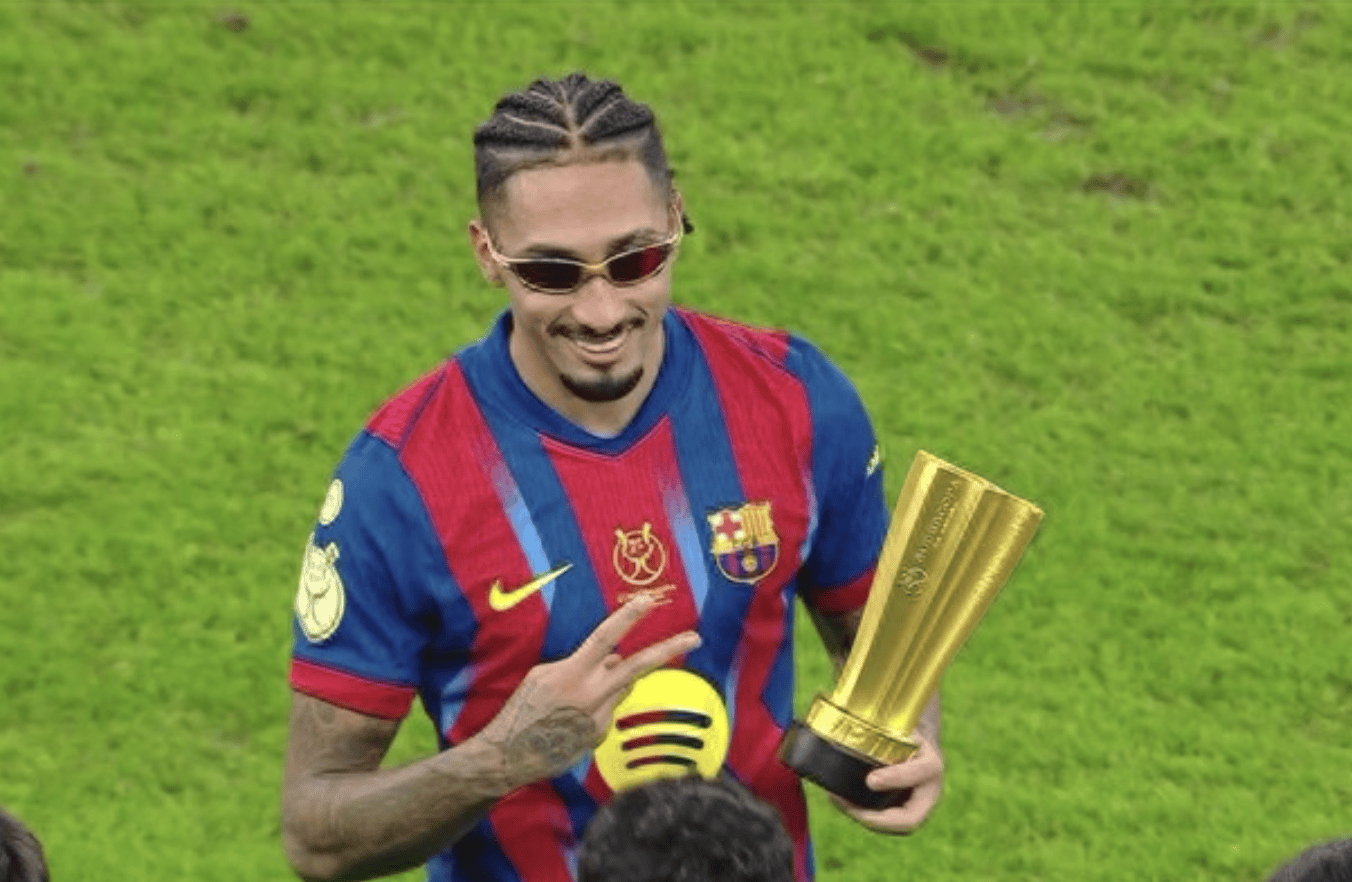 ในการแข่งขันระหว่างบาร์เซโลนาและเรอัล มาดริด ราฟินญาทำประตูแรกให้กับบาร์ซ่าในครึ่งแรก ก่อนที่วินิซิอุส จูเนียร์จะทำประตูเดี่ยวเพื่อตีเสมอให้กับทีมราชันชุดขาว กองหน้าตัวเป้าของทั้งสองทีมคือเลวานดอฟสกี้และกอนซาโล การ์เซีย ต่างก็ทำประตูได้ ทำให้สกอร์ครึ่งแรกจบลงที่ 2-2ในครึ่งหลัง ราฟินญ่าทำประตูชัยด้วยลูกยิงที่เปลี่ยนทิศทาง กัปตันบาร์เซโลน่า เฟรงกี้ เดอ ยอง ถูกไล่ออกจากสนาม แต่บาร์เซโลน่าเอาชนะเรอัล มาดริด 3-2 คว้าแชมป์ซูเปอร์คัพสเปนได้สำเร็จ