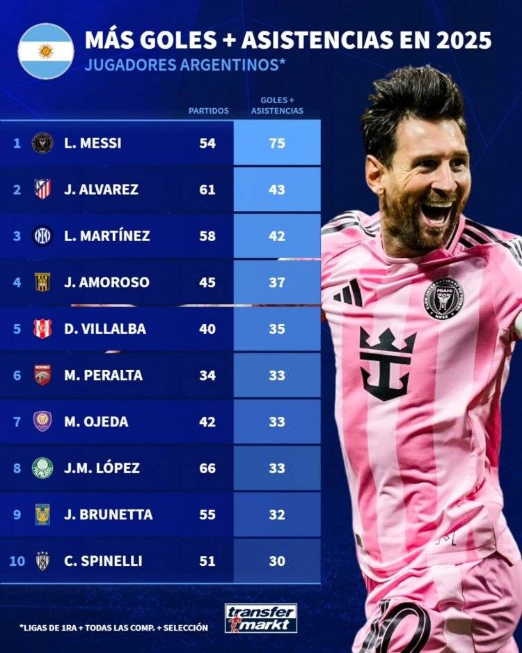 ตามสถิติ ข้อมูลยังสนับสนุนมุมมองที่ว่า เมสซี่ เป็นนักเตะที่ดีที่สุดของอาร์เจนตินา ตามสถิติล่าสุดจาก Transfermarkt เมสซี่ยังคงเป็นผู้ทำประตูสูงสุดให้กับอาร์เจนตินาทั้งในนามทีมชาติและสโมสรในปีที่ผ่านมา ด้วยประสิทธิภาพที่น่าทึ่ง สถิติของเขาอยู่ที่ 75 ประตูใน 54 นัด – ระดับที่ไม่มีใครเทียบได้! อันดับสองคือ อัลวาเรซ ด้วย 43 ประตูใน 61 นัด ตามมาด้วยเลาตาโร่ ด้วย 42 ประตูใน 58 นัด
