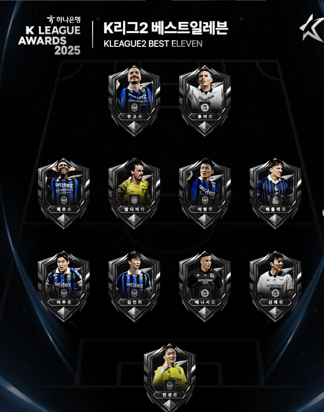 DF: ลี จู-ยอง (อินชอน), คิม กุน-ฮี (อินชอน), วินิซิอุส (ซองนัม), ชิน แจ-วอน (ซองนัม)