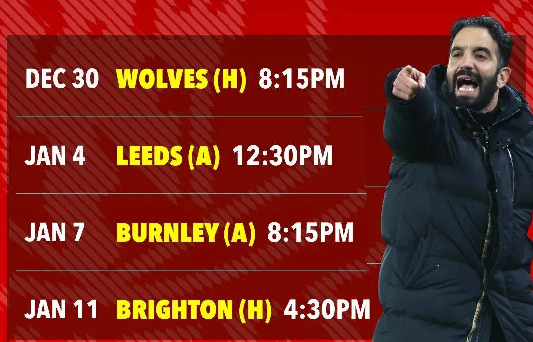 นั่นคือว่า แมนเชสเตอร์ ยูไนเต็ด จะพบกับทีมที่อยู่ในอันดับ 5 ล่างสุดของตารางคะแนนใน 3 นัดถัดไป – ซึ่งมอบโอกาสที่ดีเยี่ยมให้กับอาโมอินในการคว้าชัยชนะติดต่อกัน 4 นัดเป็นครั้งแรกนับตั้งแต่เข้ารับตำแหน่ง! หากพวกเขายังสามารถเอาชนะไบรท์ตัน (ปัจจุบันอยู่อันดับ 13 ในพรีเมียร์ลีก) ในบ้านในรอบสามของเอฟเอ คัพ ได้ด้วย ทีมอาจสามารถคว้าชัยชนะติดต่อกัน 5 นัดในทุกรายการ ก่อนที่จะพบกับแมนเชสเตอร์ ซิตี้ ในเกมดาร์บีเมืองกลางเดือนมกราคม – ทำให้แฟนบอลได้เพลิดเพลินกับช่วงเทศกาลที่ยอดเยี่ยม