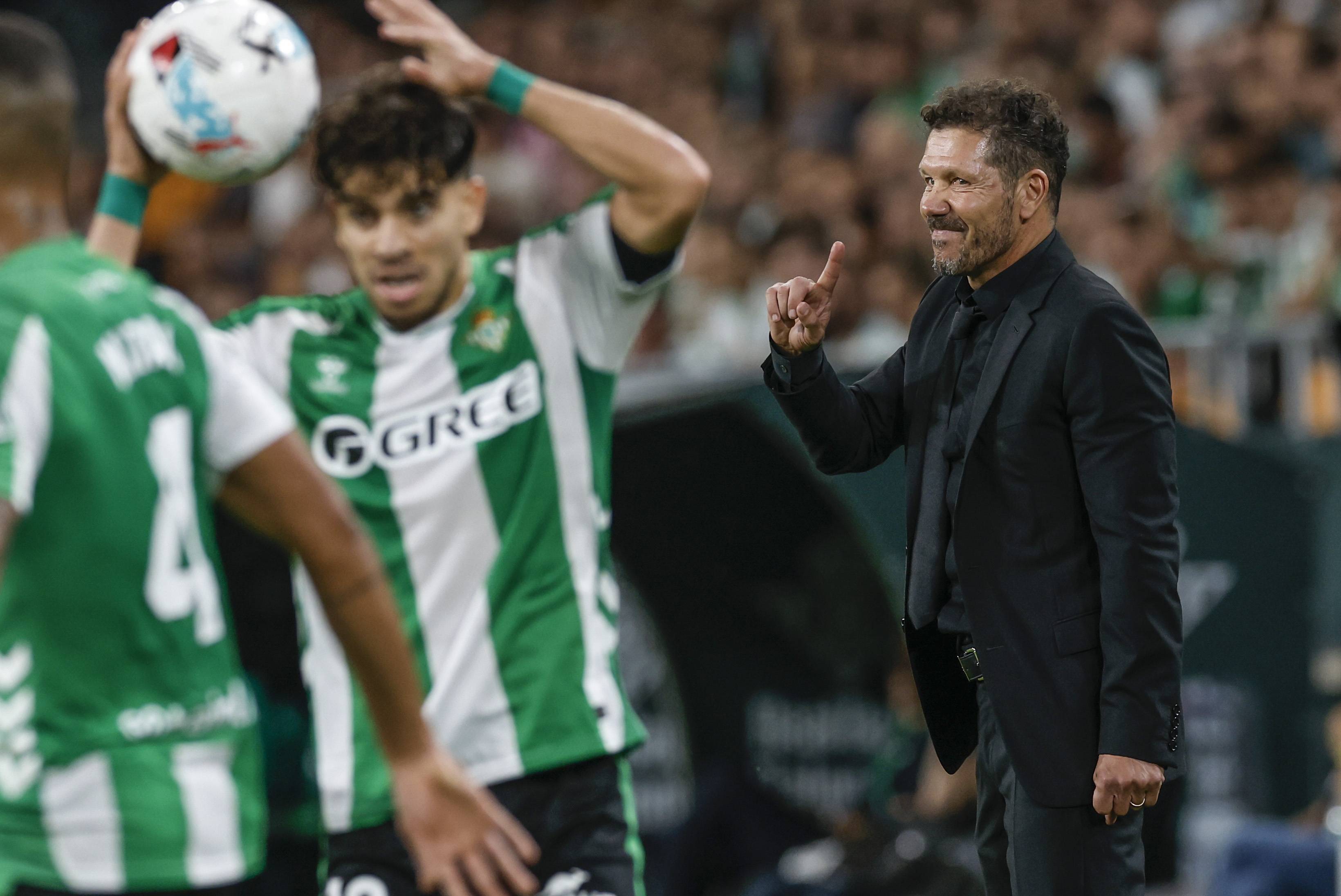เมื่อวันที่ 27 ตุลาคม ดิเอโก้ ซิเมโอเน่ ของแอตเลติโก มาดริด (ซ้าย) ท้าทาย ยูเซฟ เอ็น-เนซีรี ของเรอัล เบติส ซีเอ็นเอ/อีพีเอ