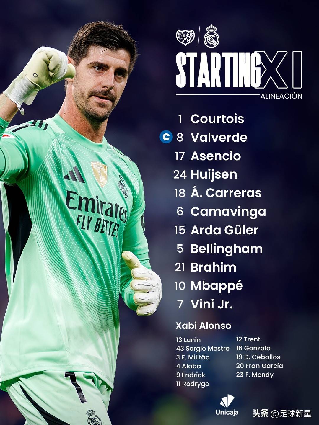 - กองหน้า: บราฮิม, วินิซิอุส จูเนียร์, คีเลียน เอ็มบัปเป้