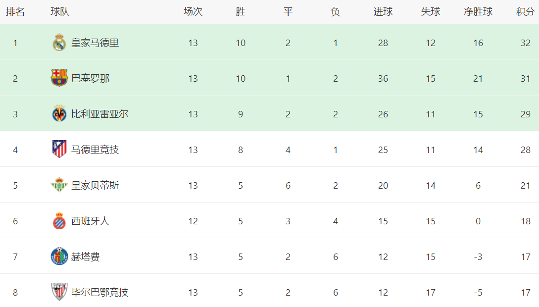 ในตารางลีก เรอัล มาดริด กลับมาครองตำแหน่งจ่าฝูงอีกครั้งด้วยคะแนน 32 คะแนน อย่างไรก็ตาม ความได้เปรียบของพวกเขายังคงน้อย โดยนำหน้าบาร์เซโลนาในอันดับสองเพียง 1 คะแนนเท่านั้น บียาร์เรอัล อยู่ในอันดับสามด้วยคะแนน 29 คะแนน ขณะที่แอตเลติโก มาดริด อยู่ในอันดับสี่ด้วยคะแนน 28 คะแนน ด้วยการที่สี่อันดับแรกมีคะแนนห่างกันเพียง 4 คะแนน การแข่งขันเพื่อชิงแชมป์ยังคงดุเดือดอย่างมาก เรอัล เบติส อยู่ในอันดับห้าด้วยคะแนน 21 คะแนน ต้องเผชิญกับการต่อสู้ที่ยากลำบากเพื่อคว้าตำแหน่งในแชมเปียนส์ลีกเอสปันญ่อล อยู่อันดับที่ 6 มี 18 คะแนน