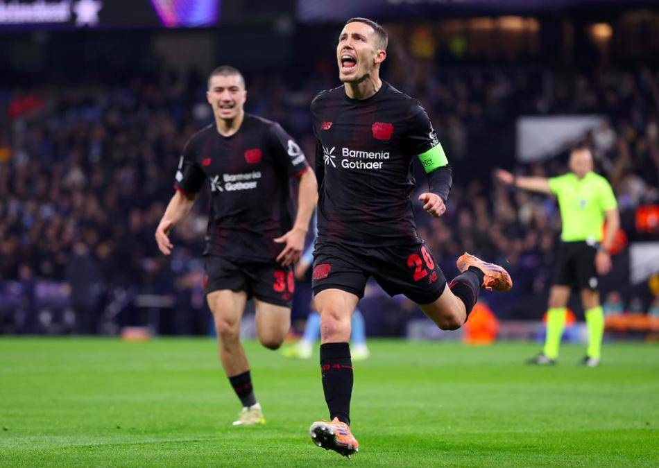 尽管如此,曼城在场面上明显占优,但率先进球的是勒沃库森。第20分钟,阿莱克斯·加西亚传中,科法内巧妙回做,边后卫格里马尔多一脚怒射,打破僵局。