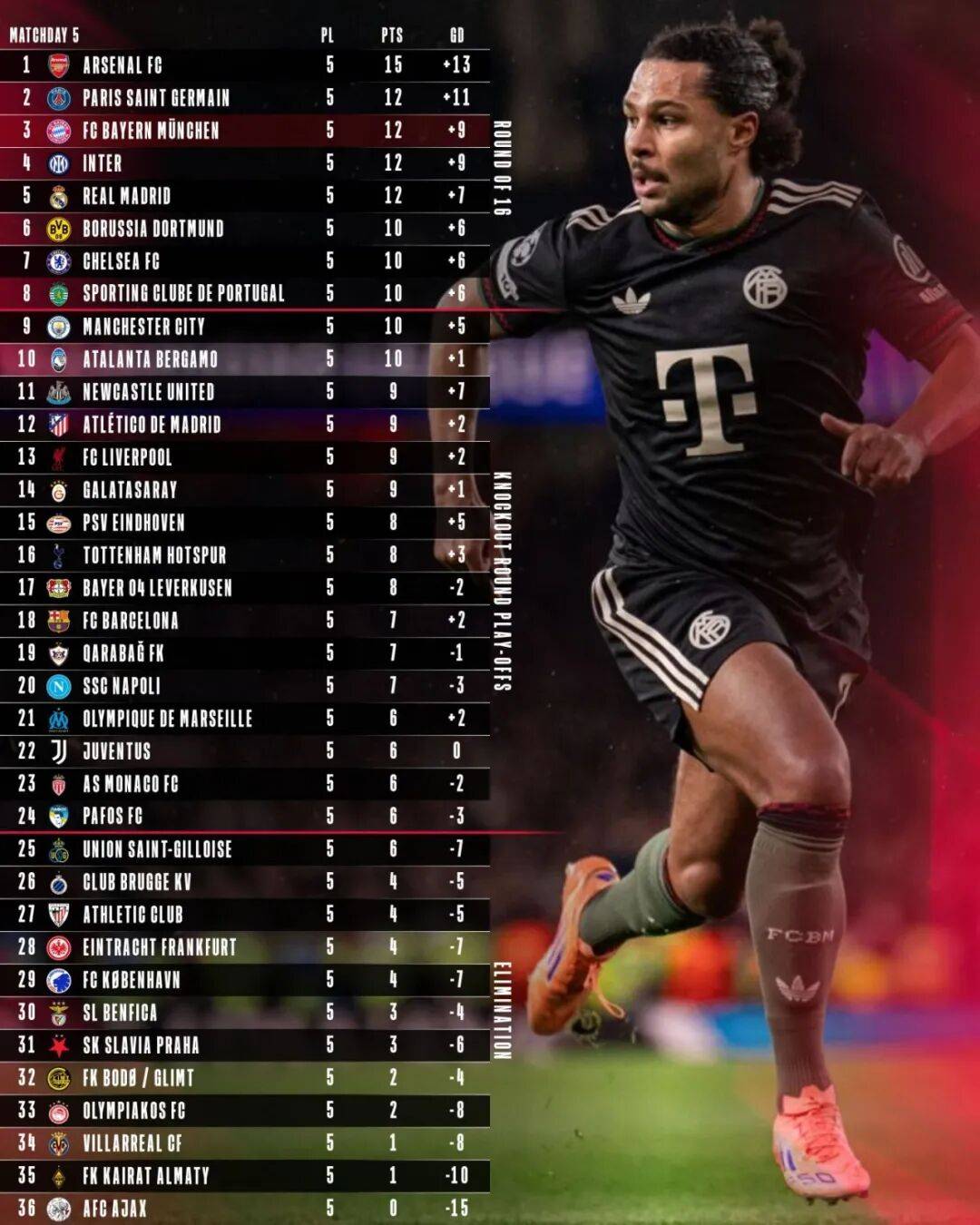 กนาบรีกลับมาเป็นตัวจริงในนัดนี้ และเป็นเขาที่ได้รับบอลยาวจากคิมมิชก่อนจะจ่ายให้คิมมิชทำประตูในสัมภาษณ์หลังการแข่งขัน เขากล่าวว่า: "อาร์เซนอลเป็นคู่แข่งที่น่าเกรงขาม การที่พวกเขาไม่แพ้ใครในแชมเปียนส์ลีกไม่ใช่เรื่องบังเอิญ การพ่ายแพ้บางครั้งต้องยอมรับ แต่เราชนะทุกนัดในแชมเปียนส์ลีกก่อนหน้านี้และอยู่ในฟอร์มที่ยอดเยี่ยม สิ่งที่เราต้องทำตอนนี้คือแค่ทำต่อไปเหมือนที่เราทำมา"