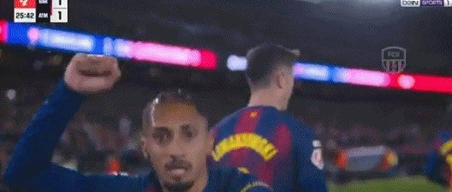 ในนาทีที่ 26 เปดรีส่งบอลทะลุช่องอย่างแม่นยำผ่านแนวกลางของแอตเลติโก เปิดทางให้ราฟินญาหลุดไปเหมือนเสือชีตาห์ เขาเร่งสปีดผ่านกองหลังไปจนเหลือแค่ตัวต่อตัวกับผู้รักษาประตู เผชิญหน้ากับผู้รักษาประตูระดับโลกอย่าง ยาน โอบลัค เขาใช้การหลอกล่ออย่างนุ่มนวลเพื่อทำให้ผู้รักษาประตูเสียสมดุล ก่อนจะยิงบอลเข้าไปในตาข่ายที่ว่างอย่างใจเย็น หลังจากทำประตูได้ เขาวิ่งอย่างบ้าคลั่ง จูบตราสโมสร และยกแขนขึ้นอย่างภาคภูมิใจ ขณะที่แฟนบอลทั้ง 45,000 คนในสนามคัมป์นูส่งเสียงเชียร์ดังสนั่นพร้อมเพรียงกัน