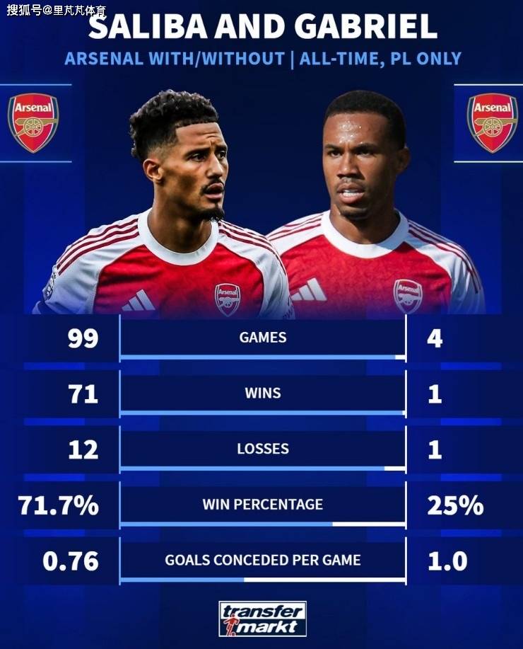 ในรอบนี้ของพรีเมียร์ลีก อาร์เซนอลพ่ายแพ้ให้กับแอสตัน วิลล่า 1-2 โดยปราการหลังตัวกลาง วิลเลียม ซาลิบา และกาเบรียล พลาดการแข่งขันครั้งนี้ไป Transfermarkt ยังได้วิเคราะห์ผลการแข่งขันพรีเมียร์ลีกของอาร์เซนอลเมื่อทั้งสองนักเตะพร้อมลงสนามเมื่อเทียบกับเมื่อทั้งสองไม่อยู่ในสนาม
