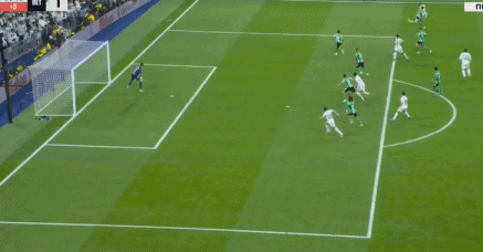 ในนาทีที่ 11 วินิซิอุส จูเนียร์ สร้างความอันตรายอีกครั้งทางฝั่งซ้าย โดยฝ่าเข้าไปในเขตโทษก่อนจะถูกทำฟาวล์ อย่างไรก็ตาม ผู้ตัดสินปฏิเสธที่จะให้จุดโทษ ทำให้แฟนบอลในซานติอาโก เบร์นาเบวไม่พอใจ ไม่กี่นาทีต่อมา วินิซิอุสส่งบอลกลับให้ จู๊ด เบลลิงแฮม และ กอนซาโล การ์เซีย ทำหนึ่งสองกัน แต่การสัมผัสบอลที่ผิดพลาดทำให้โอกาสหลุดลอยไป ความอันตรายที่ระเบิดออกมาจากปีกชาวบราซิลรายนี้ถือเป็นอาวุธที่อันตรายอย่างยิ่งในคลังแสงของอลอนโซ